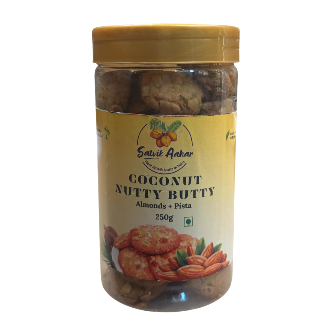 Enjoy the perfect blend of crunchy, nutty, and coconut-rich goodness with Satvik Aahar Coconut Nutty Butty Cookies—a delicious snack made for everyday cravings.